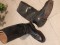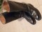 Oficerki polskie z lat powojennych XX wieku- męskie skórzane ,czarne, ze skórzaną podeszwą. Solidnie wykonane i w dobrym stanie. Wysokość cholewki 38 cm. Rozmiar 40, dł. stopy mierzona po podeszwie 28 cm. Bez prawideł