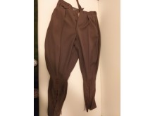 Bryczesy klasyczne, z lat 60. XX wieku. Polskie spodnie kawaleryjskie, ze 100% wełny, w kolorze khaki Wymiary: dł. całkowita 94 cm, po wew.nogawce 64 cm, w pasie 74 cm z regulacją w pasie, sznurowanie na dł. 30 cm.
