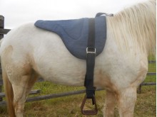 Pad doskonały dla ''naturalsów'', dobrze chroni tyłek przed obijaniem:). W komplecie regulowane strzemiona west,na szerokich puśliskach z taśmy,taki sam popręg. kolor podkładki granatowy jeans. Jeździłam na niej tylko raz, tak więc stan jej jest nienaruszony. Kupowałam ją na folbluta, ale zakładałam na kuca i pasowało także, myślę, że można dopasować ją do każdego wierzchowca.