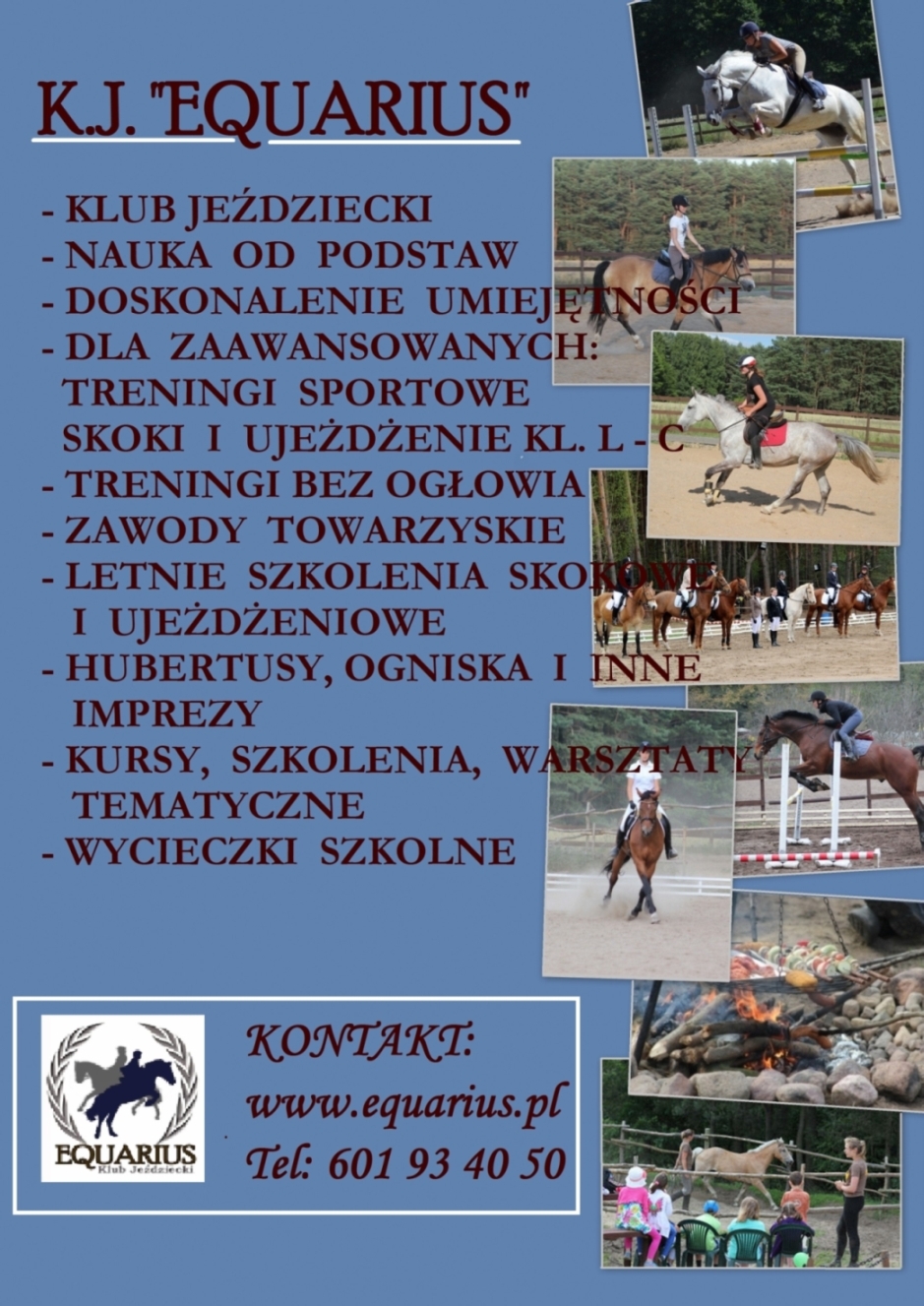 Klub Jeździecki EQUARIUS zaprasza na doskonalenie umiejętności jeździeckich oraz na treningi sportowe kl. L – CC w naszym ośrodku jeździeckim w Poznaniu. Oferujemy: