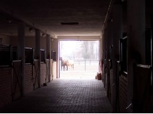 - Stajnia murowana.Przestronne jasne boksy z automatycznymi poidłami, szeroki korytarz + zaplecze socjalne