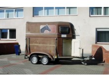NA SPRZEDAŻ przyczepa w włókna szklanego Bockmann 1999 rok z SIODLARNIĄ. Model Classic na dwa duże konie ze żłobami. DMC 2 tony. Sprowadzona z Niemiec jako przyczepa do przewozu żywych zwierząt. W Polsce drugi właściciel. Stan techniczny bdb, nie wymaga żadnego wkładu finansowego, remont generalny trzy lata temu (łożyska,hamulce na obie osie,opony,siłowniki). W międzyczasie przyczepa stała, ponieważ był koniowóz. Używana wyłącznie do własnych celów,nie użyczana, sztywny zaczep. Stan wewnątrz określam na db. Podłoga z desek dębowych wyłożona grubą gumą od polskiego producenta przyczep. Siodlarnia zamykana na oryginalny zamek z dwoma kluczykami. Przyczepa jest opłacona i sporadycznie używana. Do obejrzenia w Strzałkowie WLKP. Cena 11000. Tel. 606 997 335