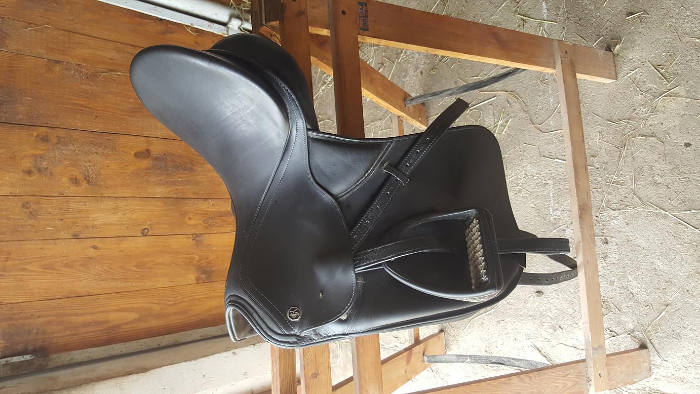 Siodło w bardzo dobrym stanie, super wygodne, poprawia dosiad nie ograniczając swobody.Siodło przed czyszczeniem. Rozmiar 16.5"-17"/27