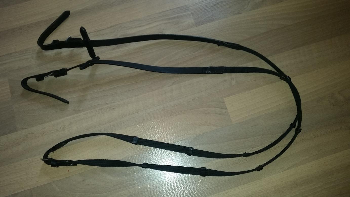 Sprzedam czarne ogłowie z nachrapnikiem hanowerskim z naczółkiem i wodzami. Łatwa regulacja, skóra dobrej jakości nie poprzecierana. Ogłowie można dopasować zarówno do full jak i cob.