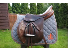 Bardzo wygodne siodło francuskiej firmy Delgrange. Ma typowe ślady użytkowania. Sprzedaję razem z puśliskami Prestige i plastikowymi strzemionami z szeroką stopką.