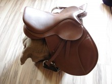 Wytrzymałe siodło skokowe o skórzanym wyglądzie. Posiada siedzisko typu "close contact", gwarantujące mocny i pewny dosiad. Siodło bardzo łatwo dopasować do konia oraz zaadaptować do indywidualnych upodobań jeźdźca. Siodło wyposażone w system Cair.