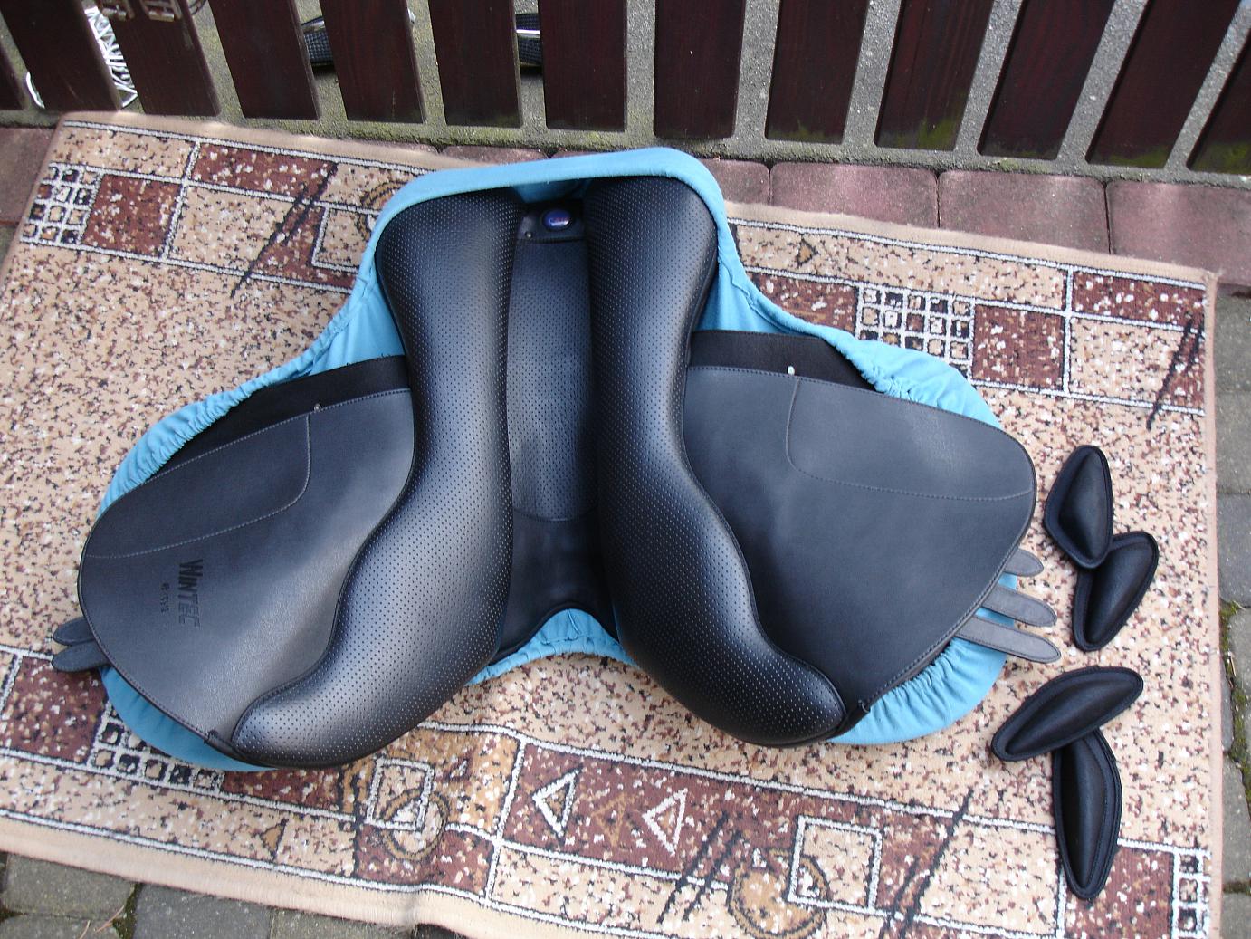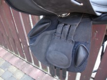 Sprzedam siodło WINTEC 2000, nowy model. Siodło jest w świetnym stanie, było jeżdżone przez jedną osobę. Posiada system wymienialnych łęków (co można zrobić samemu), dzięki czemu można je łatwo dopasować do konia. System CAIR Panel zastępuje powietrzem pod ciśnieniem tradycyjne wypełnienia w siodle. Zawarte w poduszkach powietrze równomiernie rozkłada ciężar jeźdźca. Dzięki temu siodło lepiej dopasowuje się do konia, doskonale amortyzując i zapewniając mu maksimum komfortu. Siodło wykonane z syntetycznego materiału Equileather, miekkiego, bardzo wytrzymałego i łatwego w pielęgnacji. Bardzo wygodne, o pogłębionym siedzisku, wyposażone w duże klocki kolanowe stabilizujące dosiad, dodatkowo klocki można ułożyć według własnych potrzeb, gdyż są przypinane na rzepy. Siodło jest zadbane.Posiada łęk czarny.