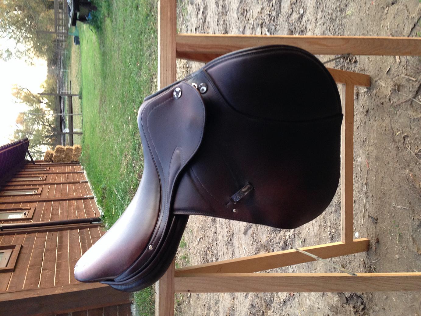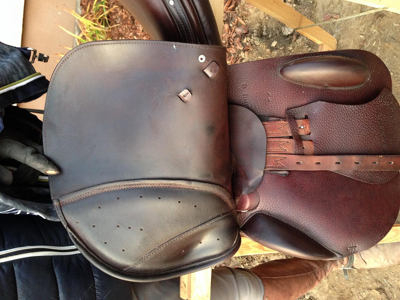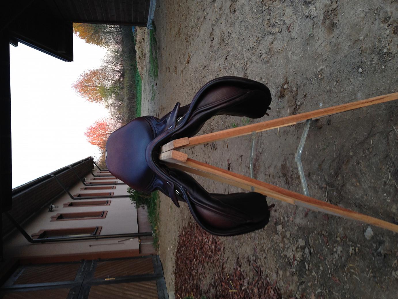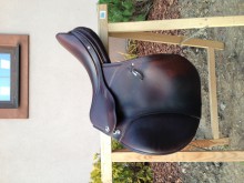 Siodło marki Prestige, model X-Meredith New D. Wykonane z cielęcej skóry, wyprodukowane w 2014 roku, rozmiar 17, rozstaw lęku 34, kolor tabacco (ciemny brąz). Siodło jest w bardzo dobrym stanie, gratis oryginalny pokrowiec. Cena 9000zł, nowe siodło kosztuje 10 900zł. Możliwość przesłania większej ilości zdjęć.