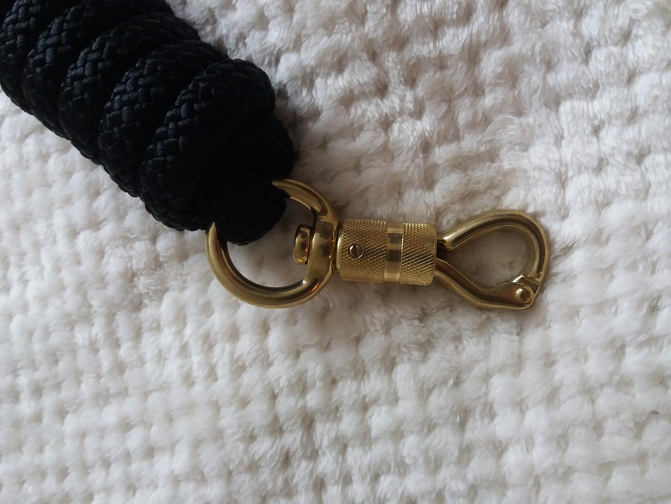 Uwiąz/lina 7metrów z karabińczykiem mosiężnym. Czarna. Nowa.