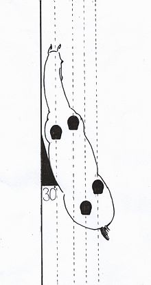 To ćwiczenie wykonuje się wyłącznie w kłusie zebranym. Należy zwrócić uwagę, by koń został tylko lekko zgięty, gdyż jego wewnętrzna tylna noga przejmuje na siebie poprzez silne podstawienie jej pod kłodę większość ciężaru, przez co jest bardziej eksploatowana.