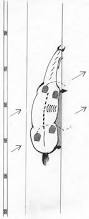 Zastosowanie pomocy jest następujące - zewnętrzna łydka jest przyłożona za popręgiem, przesuwając zad do wewnątrz. Łydka wewnętrzna działa przy popręgu, wyginając konia i pilnując zachowania impulsu w ruchu do przodu. Wodza wewnętrzna ustawia konia, zewnętrzna ogranicza wygięcie.