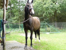 Stoi w pensjonacie w okolicach Wrocławia - ok. 20 km na zachód. Na terenie stajni jest duży plac do jazdy z bardzo dobrym podłożem, regularnie pojawiają się instruktorzy. Oczywiście udostępniam cały sprzęt do jazdy. Zależy mi na odpowiedzialnym dzierżawcy, który na pierwszym miejscu będzie stawiał dobro konia, jeździł bez przemocy (w szczególności w pysku). Do stajni nie ma bezpośredniego dojazdu komunikacją (tzn awaryjnie jest pks, ale sądzę, że nie kursuje zbyt często). Cena dzierżawy: 350 zł/miesiąc bez dodatkowych kosztów.