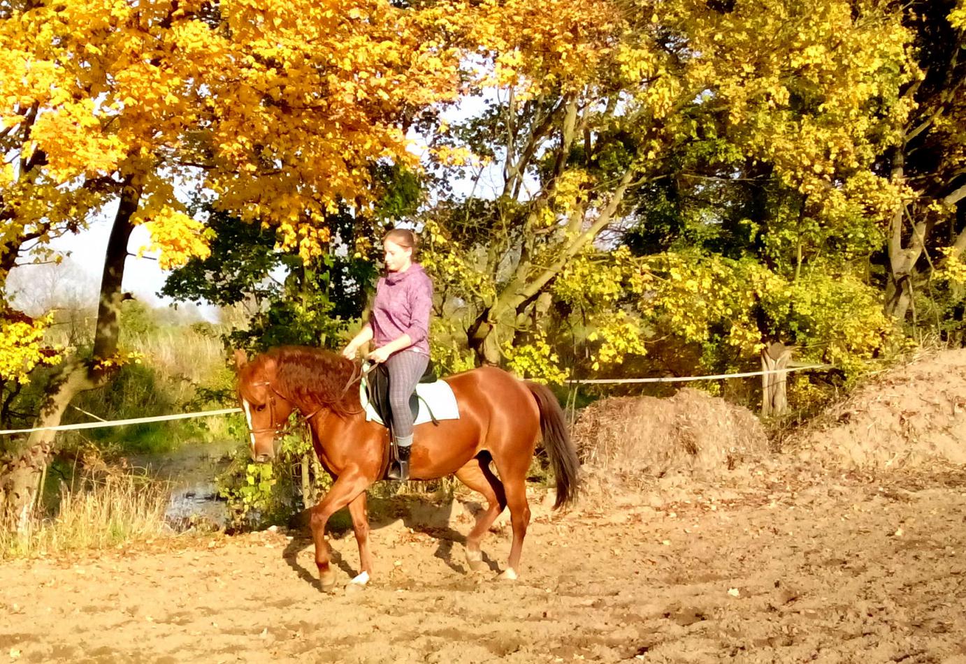 Pod siodłem bardzo grzeczna, z chęcią współpracuje z jeźdźcem, bardzo wygodna również na oklep.