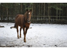 Ma ona na imię Lora- ciemny kasztan. Ma 13 lat, około 163cm wzrostu. Idealna dla osób jeszcze nie do końca pewnie czujących się w siodle, wyrozumiała i opanowana, sprawdzi się także jako nauczyciel skoków. Swojego czasu startowała zawody klasy L (100cm). Idealny koń w teren- nigdy niczego się nie boi! Woda, samochody, psy, sarny – nic nie jest jej straszne. Bardzo przywiązuje się do ludzi i jest typowym koniem- miśkiem. Klacz reaguje poprawnie na pomoce jeździeckie i jest przyjemna do jazdy.