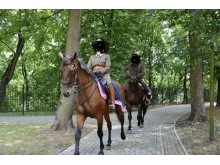 Amelka to koń zdrowy , ujeżdżano głównie w terenie, o pięknym wyglądzie. Może dać piękne zrebie. Nie mogę jej zapewnić regularnych jazd wiec teraz tylko pastwisko i sianko :) Jeździła w rekonstrukcjach wiec zgiełk miejski i huk armat ogarnia :) wybacza naprawdę wiele koń profesor.