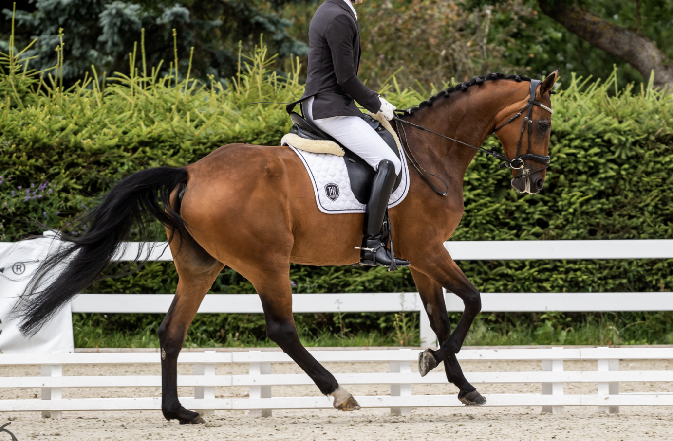 Piękna klacz z potencjałem, w treningu ujeżdżeniowym.
