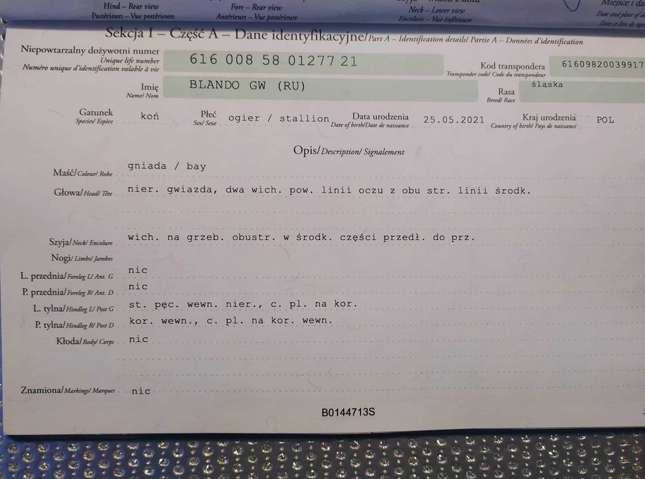 Ogierek rasa śląska, maść gniada z odmianami, ur. w czerwcu 2021 r. Regularnie odrobaczany, bezproblemowy przy kowalu, całoroczny wybieg. Rodowód: zdjęcia paszportu.