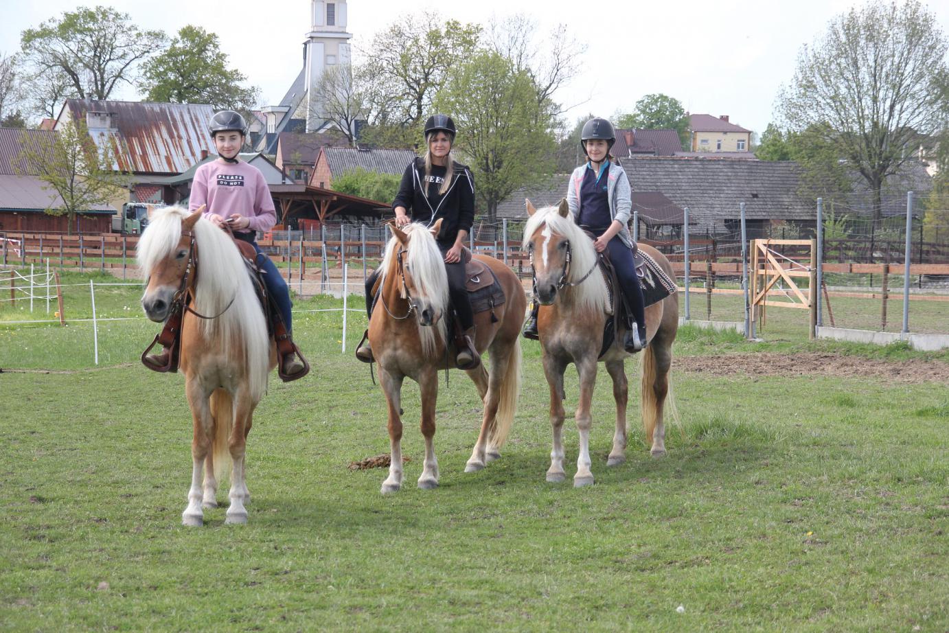 Dwie klacze rasy Haflinger, pochodzenie autriackie. Chwytające za oko, zadbane, regularnie werkowane, odrobaczane i szczepione. Obie klacze chodzą pod siodłem, jeżdżą na nich osoby dorosłe i dzieci. W terenach odważne i bezpieczne.