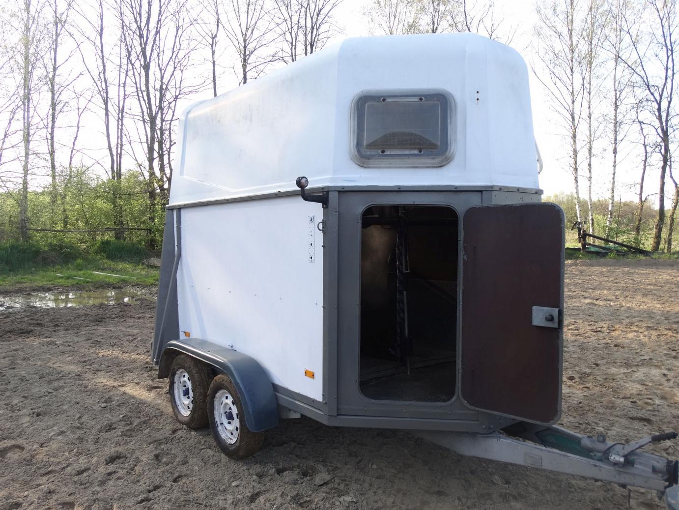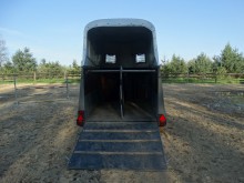 Sprzedaję przyczepę do przewozu dwóch koni marki Westfalia. Koniowóz posiada usztywnienia ścian bocznych, antypoślizgową wykładzinę - gumę, w środku są zamontowane uwiązy. Dwa uchylne okna są sprawne, bez problemu się otwierają. Klapa do wchodzenia jest w bardzo dobrym stanie, posiada poprzeczne listewki ułatwiające wsiadanie które jednocześnie są bezpieczne dla koni. Dach oraz podłoga również są w wyśmienitym stanie. Łożyska zostały przesmarowane w okresie zimowym, koła obracają się bez kłopotu. Jedyne mankamenty to starte okładziny hamulcowe w lewym, tylnym kole oraz światła wymagające poprawy. Zaczep bez problemu wskakuje na hak. Na zdjęciach nie widać kółka do podnoszenia dyszla. Jest ono zakupione i już zamontowane nowe.